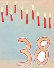 Above are the front and back side of one birthday card Steve drew for Marian. Note the whiteout - Steve must have started saying something incorrect. And who is that cat? Squirkel, perhaps? The Buff's were JB's additions. The cast-away sock and Lisa's mention of evil Birks are a reference to a recent occasion on which Marian had tripped over her own sandals, and ended up in a cast for what seemed months.